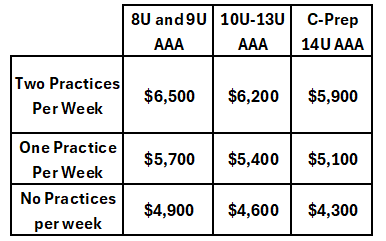Team Pricing for AAA/Majors within the AYL AAA league for 2026 is as follows: